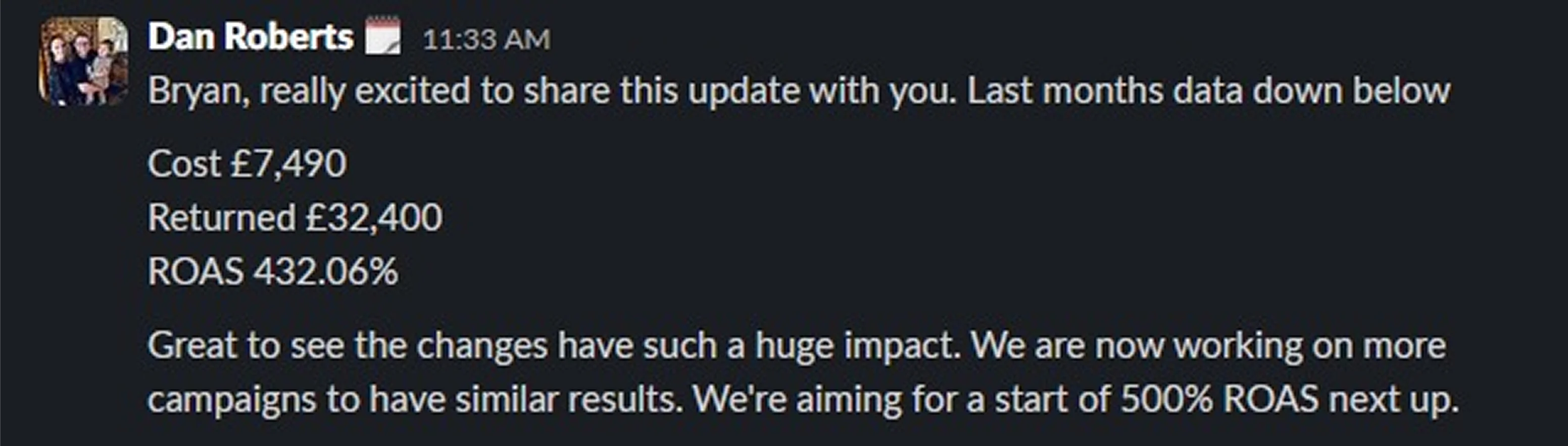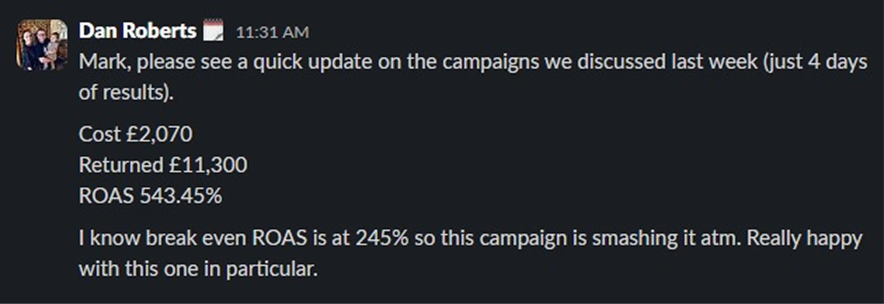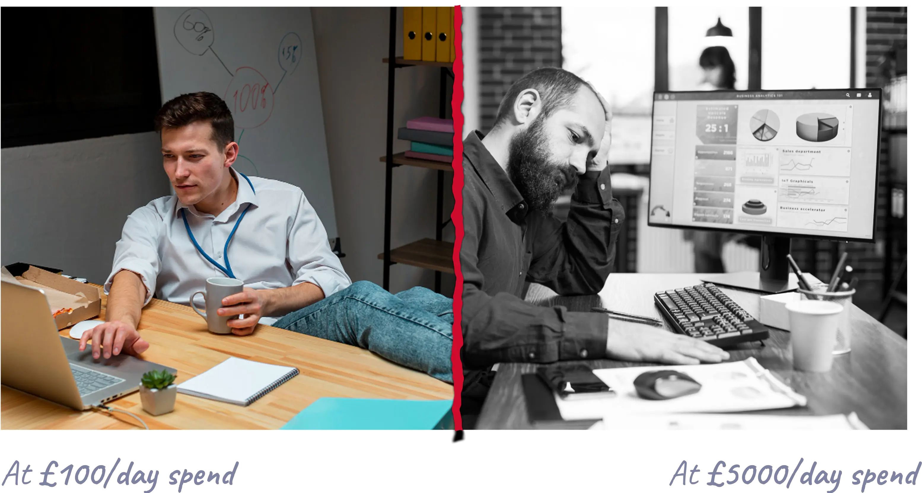 You’ll go from £100/day to £10,000+/day without campaigns collapsing.