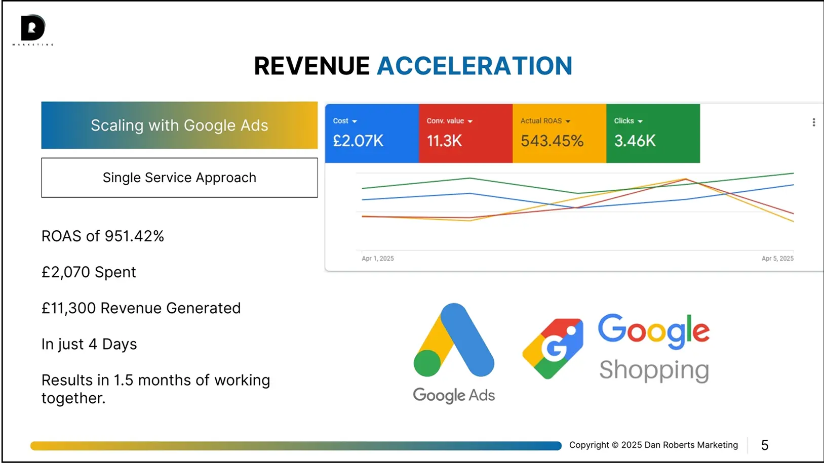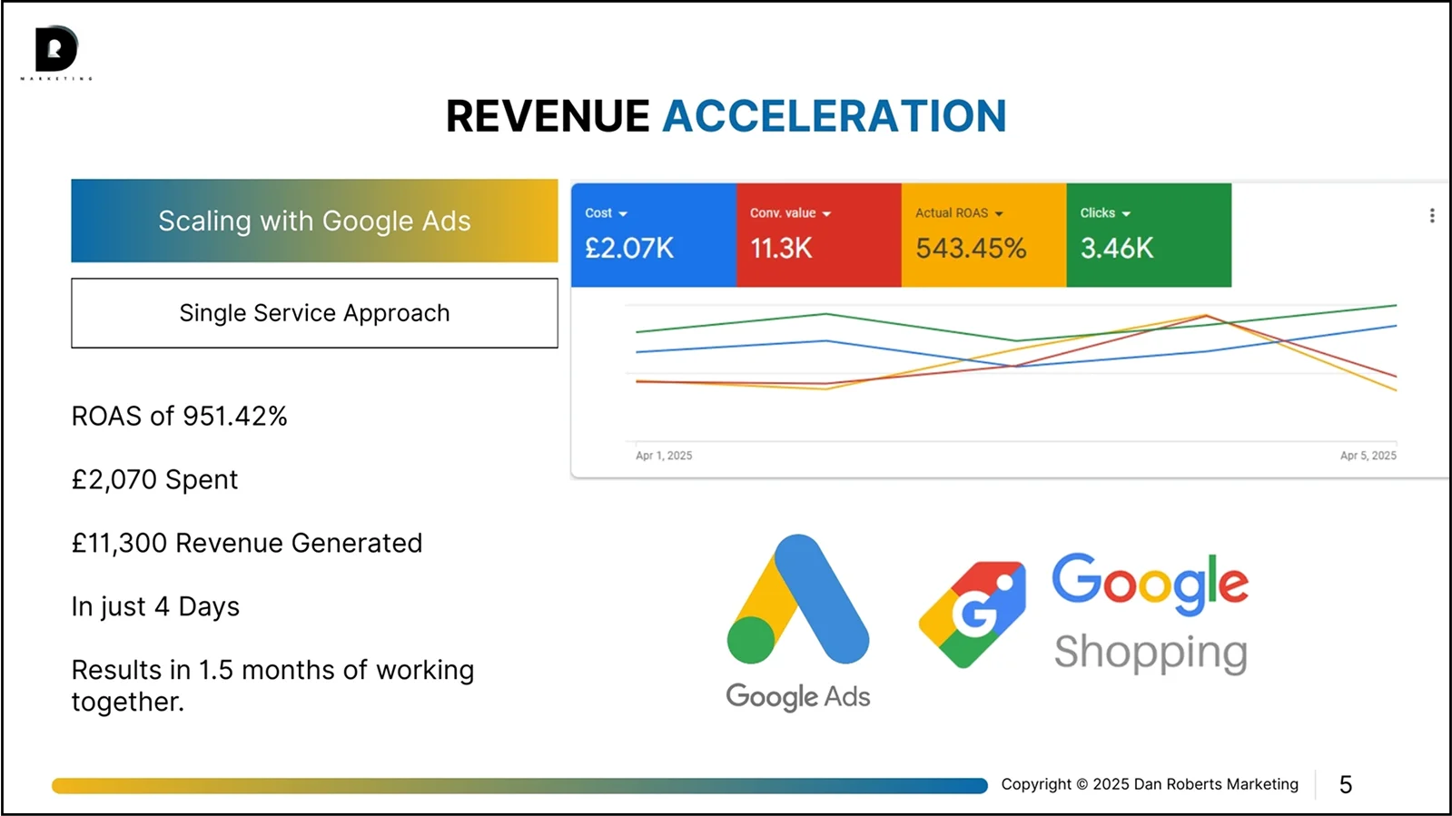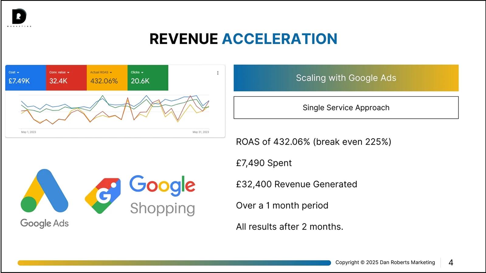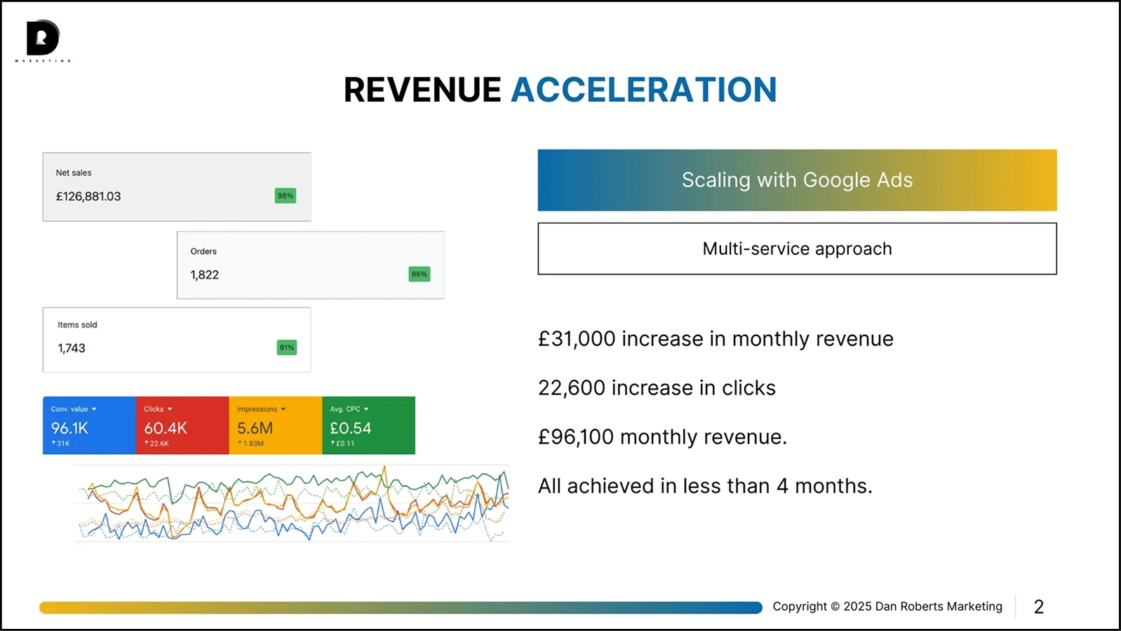 You’ll go from £100/day to £10,000+/day without campaigns collapsing.